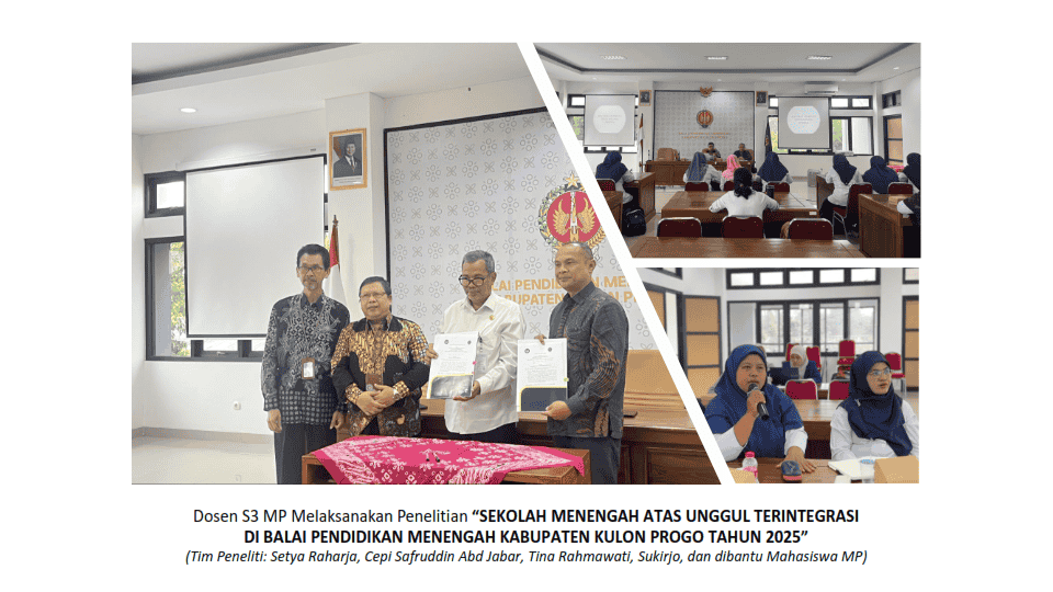 A research team from the Department of Educational Administration, Faculty of Education, Yogyakarta State University, consisting of Setya Raharja, Cepi Safruddin Abd Jabar, Tina Rahmawati, and Sukirjo, has conducted a study entitled “Integrated Model of Excellent Senior High Schools” to explore the meaning, implementation readiness, and perceived value of excellence in high schools within the Special Region of Yogyakarta (DIY), particularly in Kulon Progo Regency.